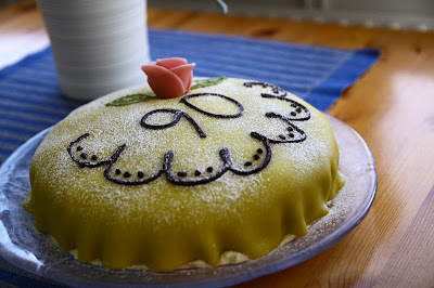 Igår på förmiddagen var vi på 90 års-kalas där min kära morfar var jubilar. Jag hoppas han inte fick en magsjuka av oss, utan vi nöjer oss med att ge bort ballonger och en hembakt princesstårta.